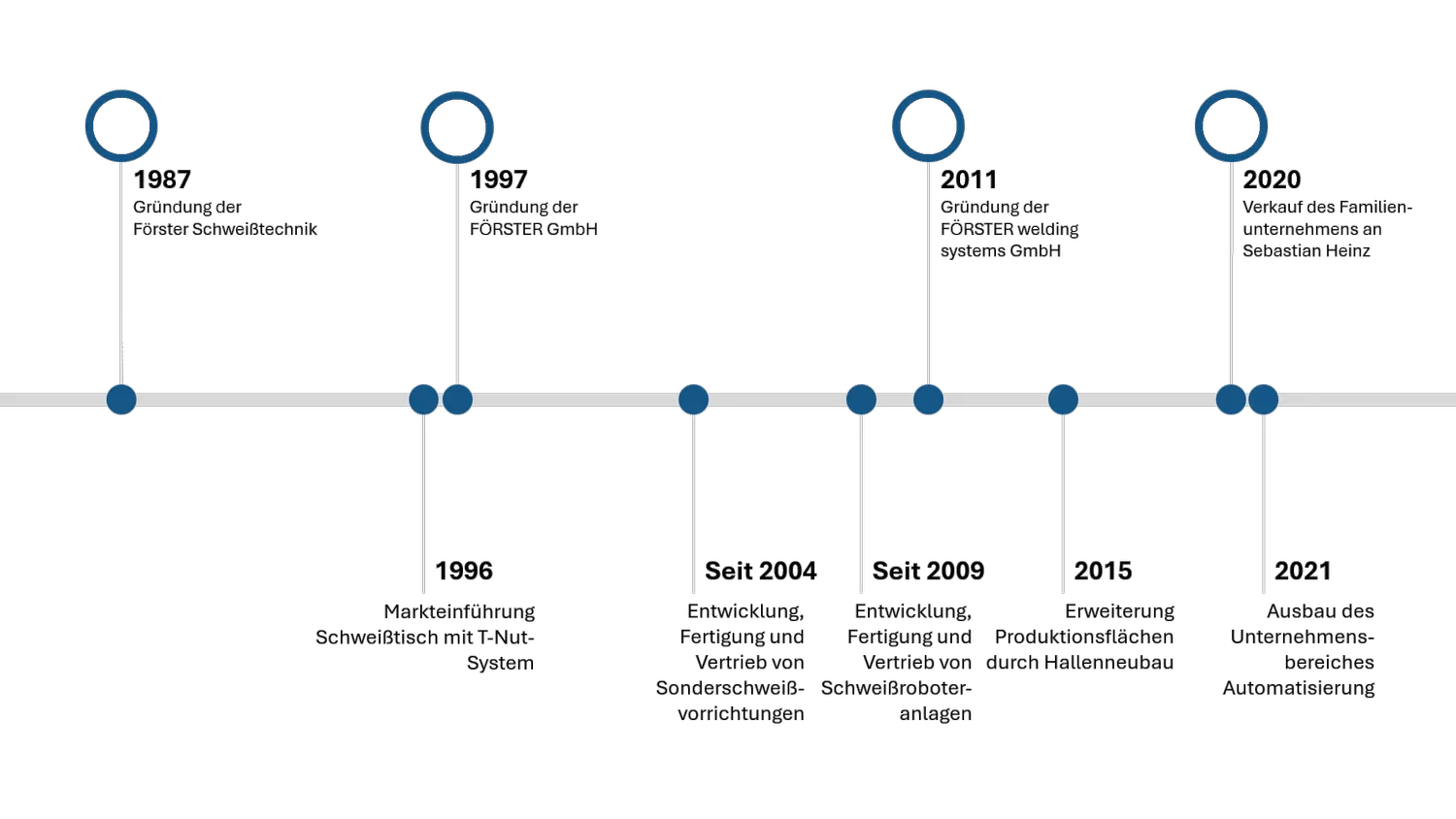 Seit 1987 entwickeln wir bei FÖRSTER welding systems Lösungen, die Schweißarbeitsplätze sicherer, effizienter und produktiver machen. Was als Servicewerkstatt begann, ist heute ein spezialisierter Hersteller praxisbewährter Schweißplatzsysteme – entwickelt aus den realen Anforderungen unserer Kunden.